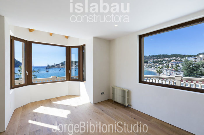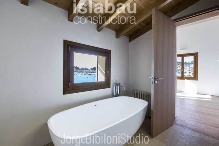 • Descripción del trabajo:Proyecto en Puerto de Soller, de la mano de ISLABAU y de Jorge Bibiloni Estudio. Carpintería exterior en madera de Iroko sistema europeo y persianas con tratamiento autoclave lacadas. Carpintería interior en madera de roble, con puertas de paso macizas, bisagras ocultas, sin tapajuntas. Armarios, muebles de baño y elementos de decoración en tablero rechapado de roble, con iluminación LED integrada. Fotos: Kamal Fotografía.